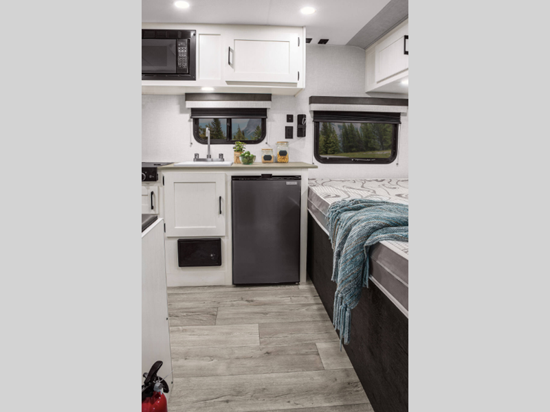 The BAL frame with American steel powder-coated & baked is engineered for durability and strength, ensuring a smooth and stable ride. Dexter axles with EZ lube hubs make towing a breeze, while insulated baggage doors with magnetic catches provide secure and convenient storage. Plus, the Dicor Tufflex PVC walkable roof gives you peace of mind and easy maintenance. Inside, enjoy the convenience of a tankless water heater, providing endless hot water!