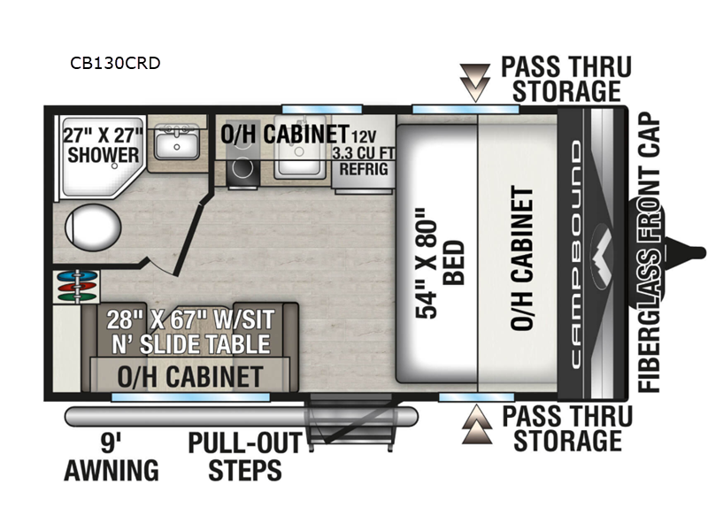 Venture RV Campbound CB130CRD t ravel trailer highlights: Full Bathroom Cable TV ... more about Campbound CB130CRD