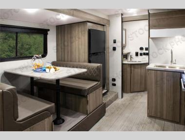 Looking for privacy when you camp? Do you enjoy dining at a booth dinette when you are staying in an RV? This Sonic provides all of that plus more! Starting with the private bedroom with an RV queen bed, StorMore bedside nightstands with a 110V outlet and USB charging to keep the electronics ready, dual wardrobes, and access to the walk-through bathroom through a space savings sliding door. The second entry to the walk-through bath is in the main living and kitchen area where you will find a booth dinette and an 8 cu. ft. refrigerator, an L-shaped countertop with a large sink and kitchen amenities, plus an entertainment center and a 64" jiffy sofa. And the furniture doubles as extra sleeping space when needed. Don't forget about the 17' power awning offering an outdoor living area, just add your camp chairs.
