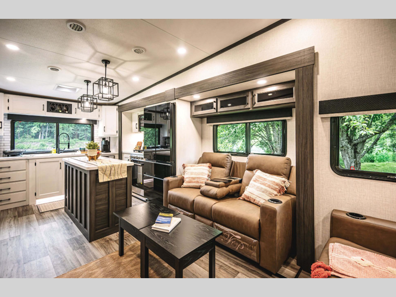 - Deluxe Tri-Fold Sofa & Theater Seats (Varies by Model) , King Bed Master Suite (Queen 343VBH/VIB)