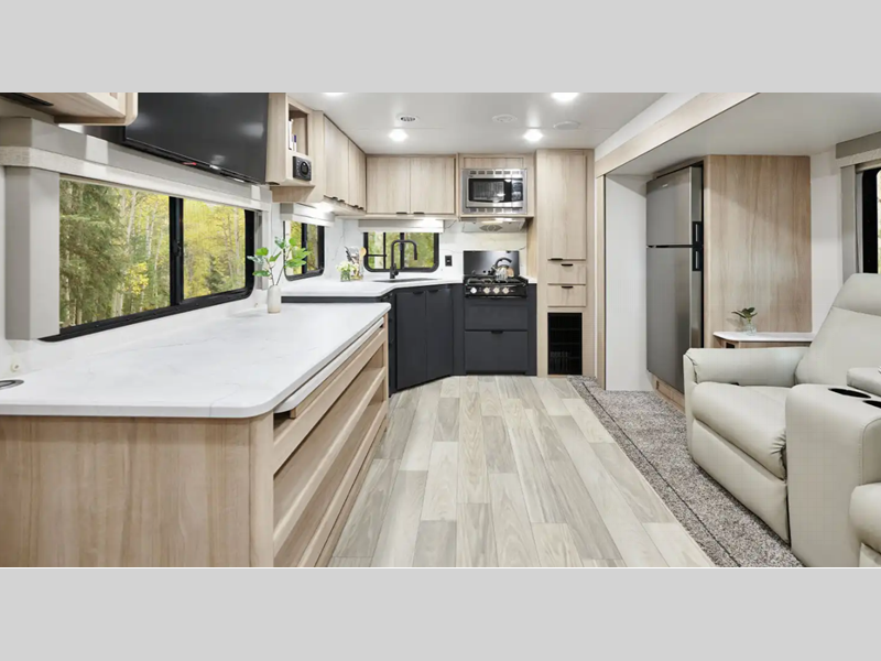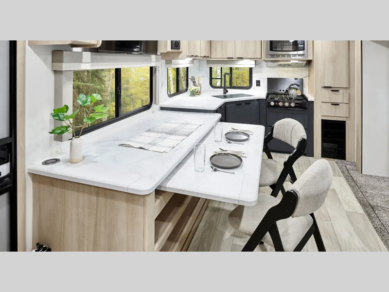 Inside, you'll feel right at home with a large bathroom, a spacious kitchen area, and comfortable sleeping arrangements. You'll enjoy great entertainment with the JBL premium sound exterior speakers, and the stylish interior provides a more modern look you are sure to love. With class-leading exterior storage, now you can bring along fishing poles, hiking gear, and extra lawn chairs! You will also find FILON MAX fiberglass sidewalls with Azdel and an NXG engineered frame for strength and durability!