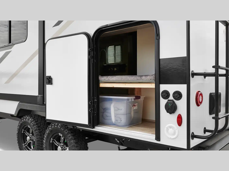 The two 200W solar panels with 30AMP MPTT charge controller and the 320-amp-hour Lithionics lithium-ion battery are the prize features of the Micro Minnie FLX. There is also a 3,000-watt pure sine wave inverter and a Truma AquaGo Comfort+ water heater and VarioHeat furnace. You'll have ample storage space both inside and out, along with wide open living spaces, a spacious bath and full kitchen amenities.