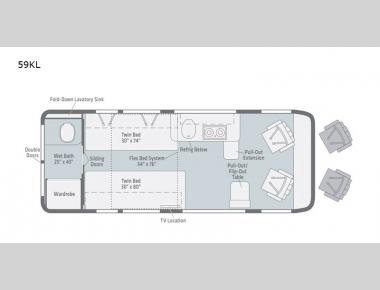 Sleeps 2 Length 21 ft Ext Width 6 ft 9 in Ext Height 9 ft 4 in Int Height 6 ft 3 in Interior Color Bleu with Walnut, Bleu with Walnut and White, Bleu with Weathered Teak Exterior Color Full Body Paint, Deluxe Full Body Paint Choices; Bright White, Bright Silver, Ceramic Gray, Sandstone Hitch Weight 3500 lbs GVWR 9350 lbs Fresh Water Capacity 18 gals Grey Water Capacity 12 gals Black Water Capacity 12 gals Fuel Type Gasoline Engine 3.6L V6 Chassis Ram ProMaster Horsepower 280 hp Fuel Capacity 24 gals Wheelbase 159 in Available Beds Two Twin Refrigerator Type Single Door Compressor Driven Refrigerator/Freezer 12V Refrigerator Size 4.3 cu ft Convection Cooking Yes Cooktop Burners 1 Shower Size 25" x 43" Number of Awnings 1 Axle Weight Front 4629 lbs Axle Weight Rear 5291 lbs LP Tank Capacity 25 lbs Water Heater Capacity 2.6 gal Water Heater Type Truma Combi Eco Plus TV Info Coach 24" HDTV Awning Info 13' Rack Mounted Power with LED Lighting and Bluetooth Control Gross Combined Weight 12000 lbs Shower Type Wet/Bath Shower Electrical Service 30 amp Similar Motor Home Class B Floorplans