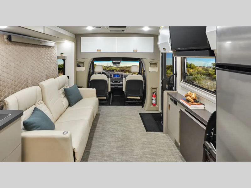 Sleeps 4 Slides 1 Length 25 ft 8 in Ext Width 7 ft 7 in Ext Height 10 ft 7 in Int Height 6 ft 8 in Interior Color Hygge Haus ll, Mod Allure ll Exterior Color Carbonite Gray, Misty Lake, Ocean Coast Hitch Weight 5000 lbs GVWR 11030 lbs Fresh Water Capacity 35 gals Grey Water Capacity 46 gals Black Water Capacity 47 gals Furnace BTU 25000 btu Fuel Type Diesel Engine 2.0L High Output Turbo Diesel 4-Cylinder Chassis Mercedes-Benz RWD Sprinter Fuel Capacity 24.5 gals Wheelbase 170 in Number Of Bunks 1 Available Beds Twin Beds with King Conversion Refrigerator Type 12V Two Door Compressor Driven Refrigerator Size 10 cu ft Convection Cooking Yes Cooktop Burners 2 Shower Size 25" x 30" Number of Awnings 1 Axle Weight Front 4410 lbs Axle Weight Rear 7720 lbs LP Tank Capacity 50.76 Water Heater Type Truma AquaGo Comfort Plus Tankless AC BTU 15000 btu Basement Storage 80.9 cu. ft. TV Info 32" LED HDTV, BR 24" LED HDTV Awning Info 16' Power with LED Lights & Bluetooth Control Gross Combined Weight 15250 lbs Shower Type Standard Electrical Service 30 amp Solar Wattage 240 watts Similar Floorplans