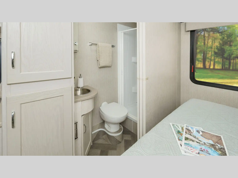 There is a Mercedes-Benz Sprinter chassis that provides a strong foundation plus a high-output turbo-diesel engine with a 9-speed automatic transmission for the ultimate driving experience. You can stay powered up by the 3.6kw LP generator and two 100-watt solar panels, or you can upgrade to the optional 3.2kw diesel generator. A queen bed with WinnSleep technology ensures a great night's rest each night and the full bath is a feature you won't want to camp without.