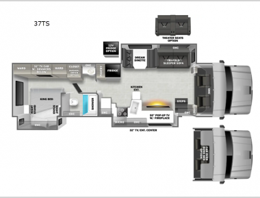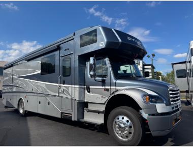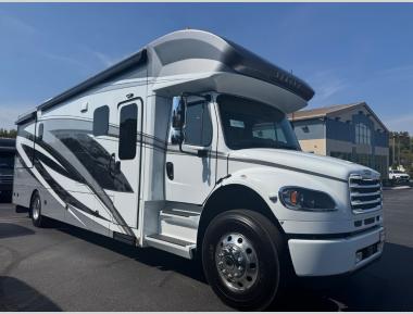 The Dynamax DX3 37RB Super C features a king-size master suite, full and half baths, residential kitchen, and outdoor entertainment. Call Today 352.787.7744