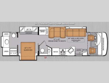 Stock #108741XOcala FLHit the road in style with this 2014 Thor Palazzo 36.1—Cummins diesel power, bath-and-a-half layout, mega storage, luxury amenities, and family-friendly comfort!Stock #108741XOcala FLHit the road in style with this 2014 Thor Palazzo 36.1—Cummins diesel power, bath-and-a-half layout, mega storage, luxury amenities, and family-friendly comfort!