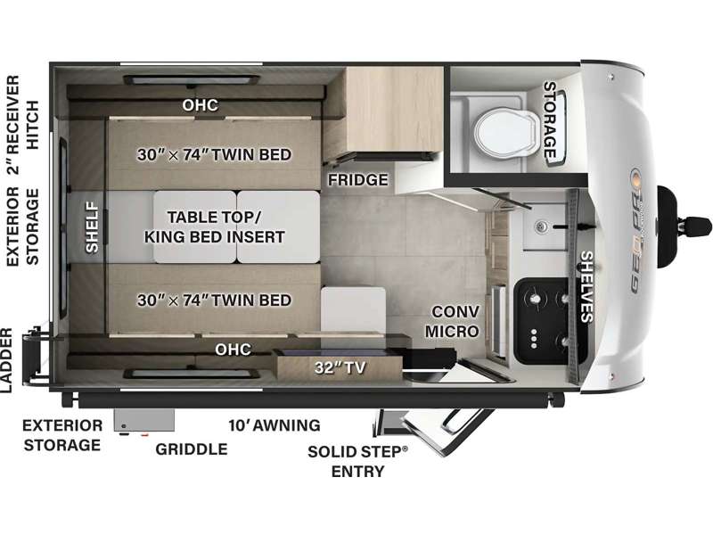 Compact and Lightweight – Weighing just over 2,500 lbs., the GEO Pro G15TB is incredibly easy to tow, making it a perfect match for smaller vehicles, including SUVs and trucks. Its compact design ensures hassle-free towing while still providing all the essentials for a comfortable camping experience.