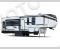 Enjoy a home on wheels with this fifth wheel! There are two bedrooms to choose from plus an upper loft with two 32" x 74" bunk mats, cabinets, and TV prep. The front private bedroom has a queen bed slide across from a dresser and a front wardrobe that is prepped to add an optional washer and dryer. The second bedroom has a queen bed slide across from a dresser with wardrobes on either side, plus it's very own full rear bathroom which has a 36" x 24" tub and a rear entry/exit door to the unit. The second full bathroom has a shower with a seat so everyone can get ready quickly in the morning. Prepare your best home cooked meals with the kitchen island and three burner cooktop then enjoy it at the free standing dinette. Relax in true comfort each night in the theater seating across from the fireplace and 50" TV at the entertainment center!