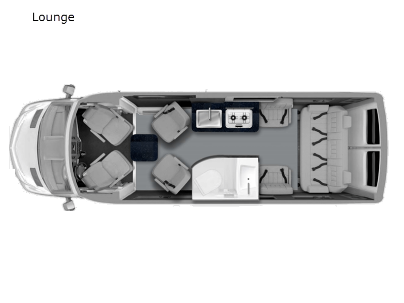 Two Captain’s Chairs in the cab with two additional lounge seats behind—perfect for dining, conversation, or remote work