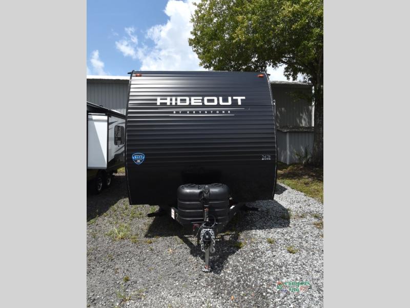With any Hideout Sport Double Axle travel trailer by Keystone you will enjoy simplified camping solutions that won't break the bank! Each model is constructed with a durable aluminum exterior, tinted safety glass windows, a walkable roof, and an I-beam frame. There are power tongue jacks and heavy duty stabilizer jacks that will make it easier than ever to hitch up and go. An XL entry assist handle will also provide convenience, along with a power awning that will provide much wanted shade during the day. You will feel right at home with stylish decor, blackout night shades, and cozy queen bed with storage underneath!
