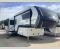 This Model Z luxury fifth wheel is bright and modern on the inside, with loads of amenities that will have you dreaming of your next trip! Enter and find a spacious combined living/kitchen space thanks to dual opposing slides. There is ample seating with a sliding desk/dining table, 62" theater seating, and a 72" tri-fold sofa along the rear wall. You can easily relax and enjoy the 50" Smart telescoping TV with a cozy fireplace below. The kitchen offers all that you need to prepare and cook meals just like home with a 16 cu. ft. refrigerator for your perishables, a 30" microwave oven, and three burner range top and oven. You will love the integrated spice rack, and the kitchen island all outfitted with dog bowls and double pull out trash bins with an integrated Stow 'N Go paper towel holder. There is also an 84" pantry with adjustable shelves for all of your canned and dry goods. Head up the steps to a private master suite with king bed slide. You can opt for the queen bed if you like. A sliding dresser top features hidden storage which is perfect for jewelry and other personal belongings. The front wardrobe features mirrored doors and the corner closet has been prepped for a stackable washer and dryer if you choose to add that option. Relax and enjoy a large bath featuring a linen cabinet, a 30" x 42" shower, and vanity with sink, plus medicine cabinet.