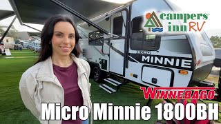 Get ready to hit the road and make unforgettable family memories with the Winnebago Micro Minnie 1800BH travel trailer. Built for adventure and designed for modern camping life, this compact yet feature-packed RV makes it easy to travel farther, stay longer, and enjoy every moment at the campground. Whether you’re chasing weekend getaways or planning extended trips, the Micro Minnie delivers big comfort in a lightweight, easy-to-tow design.