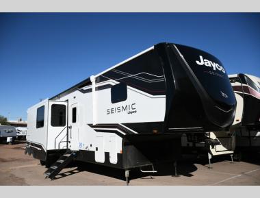 Stock #110394Ocala FLNew 2026 Jayco Seismic 395 toy hauler by Jayco featuring luxury living, massive garage, smart technology, rugged performance, and family-ready comfort built for nationwide adventures.Stock #110394Ocala FLNew 2026 Jayco Seismic 395 toy hauler by Jayco featuring luxury living, massive garage, smart technology, rugged performance, and family-ready comfort built for nationwide adventures.