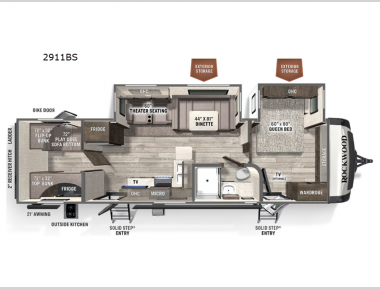 Double-Size Rear Bunks Ideal for kids or guests with built-in storage to stash camping gear or duffel bags