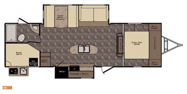 - Family-Friendly Layout: The ST28BH is perfect for families or groups with its well-thought-out layout, offering sleeping space for up to 8 people! The queen-sized bed in the master suite offers comfort for adults, while the bunkhouse in the rear ensures the kids (or guests) have their own private space.
