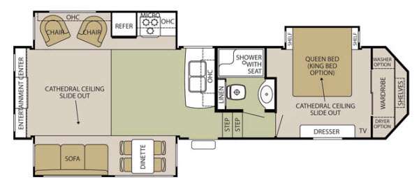 - Spacious Triple Slide Design: With three slide-outs, this fifth wheel offers an expansive living area that feels just like home.