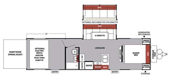 - Optional Electric Beds & Pass-Thru Dinette – Customize the garage for extra sleeping space or a lounge/dining area.