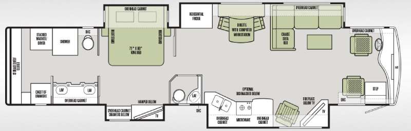 The 2015 Zephyr 45 DZ is engineered for long-term touring. With expansive basement storage, advanced climate control systems, and ample freshwater and holding tank capacities, you can confidently travel farther and stay longer. Advanced electronics and driver-focused technology enhance both safety and convenience on every mile of your journey.