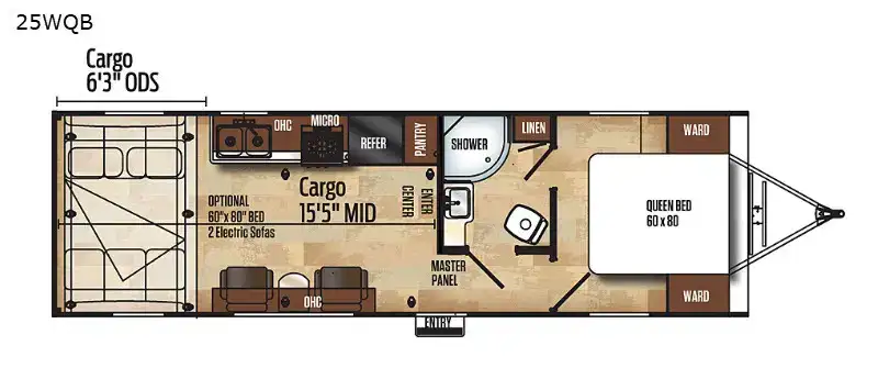 Ideal size and weight – With an exterior length around 32’8? for the 25WQB model and a built-for-hauling stature, you’re getting a solid travel companion.