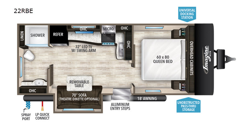 The Imagine XLS 22RBE is built for travelers who want a roomy interior without upscaling to a heavy or oversized trailer. Its lightweight frame and aerodynamic profile make towing smoother, safer, and more fuel-efficient, opening up more possibilities for half-ton and mid-size tow vehicles. Whether you're heading to a beach campground, wooded state park, or extended road trip route, this trailer keeps travel simple and enjoyable.
