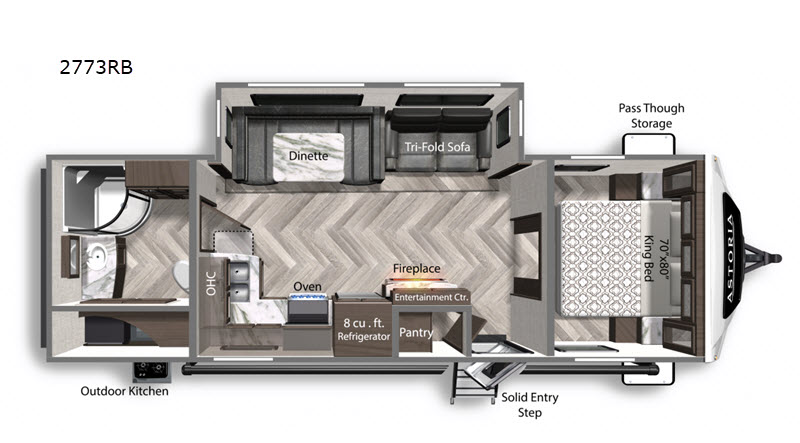 The Dutchmen Astoria 2773RB travel trailer is designed to make your travel experiences as comfortable and stylish as possible. Here’s a breakdown of its standout features:
