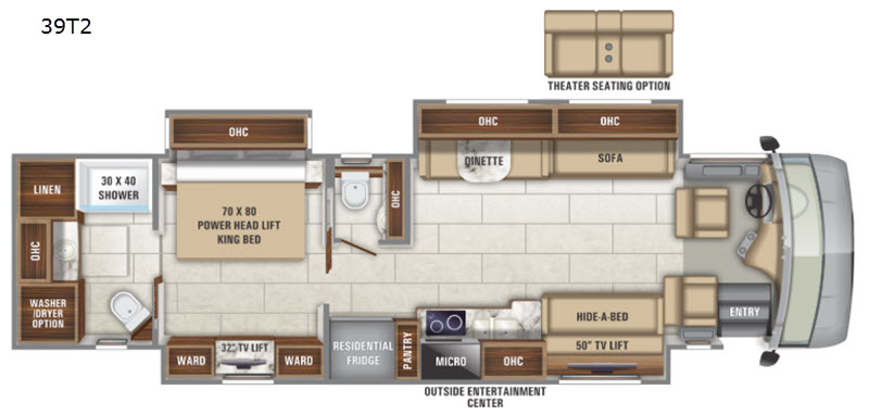 - Theater Seating Option 2: 68" reclining theater seating driver-side (39T2 & 39BH)