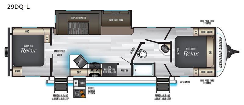 The Forest River Cherokee Alpha Wolf 29DQ-L travel trailer is a thoughtfully designed RV that balances comfort, privacy, and modern functionality—ideal for families or groups looking to travel without sacrificing the feel of home. Here’s a breakdown of its key features and benefits: