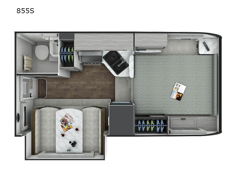 Lance campers are known for their durable construction and green manufacturing practices. Built with Azdel panels, Euro-Ply interiors, and high-gloss fiberglass exteriors, the 855S is lightweight, stronger, and better insulated than traditional RVs. Mold and mildew resistance, superior sound absorption, and better R-value mean you’ll stay comfortable in more conditions, whether it’s a chilly mountain morning or a sunny desert afternoon.
