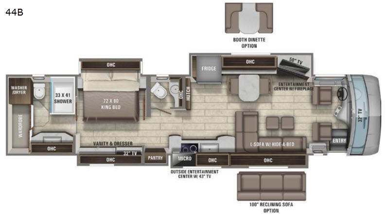 - Entegra-exclusive Relia-Torque flush-mounted 12V slideout system with VegaTouch and rocker switch controls