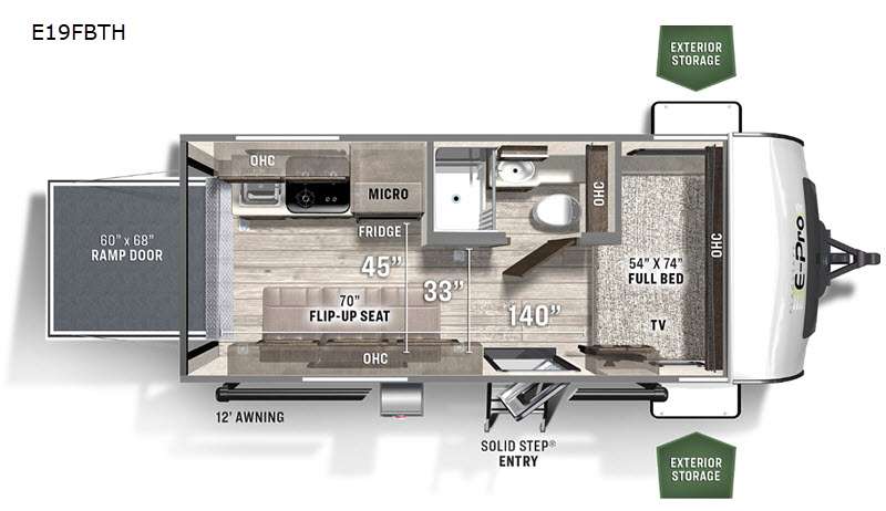 Solar-Ready for Off-Grid Adventures: The E-Pro E19FBTH is equipped with solar prep, making it a great choice for boondocking and camping in remote locations. Just add a panel, and you’re ready for off-grid fun!