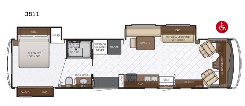 The Bay Star 3811 isn’t just another Class A motorhome—it’s a lifestyle solution for those who require mobility accommodations without compromising on quality or luxury. Whether you’re traveling the country or setting up at your favorite campsite, this wheelchair-accessible coach makes every moment on the road comfortable, accessible, and enjoyable. From the thoughtful floorplan to the stylish finishes, the 3811 is ready to help you go farther with ease.