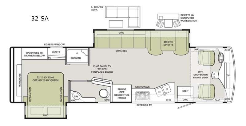 - Ultraleather Sleeper Air Coil Sofa on Driver Side (Optional on 32 SA and 34 PA Only)