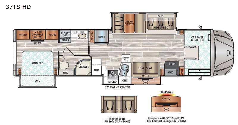 - Entertainment Center with 50” LED Smart TV and Fireplace in Place of Loveseat and Cab-Over TV (37TSHD Only)