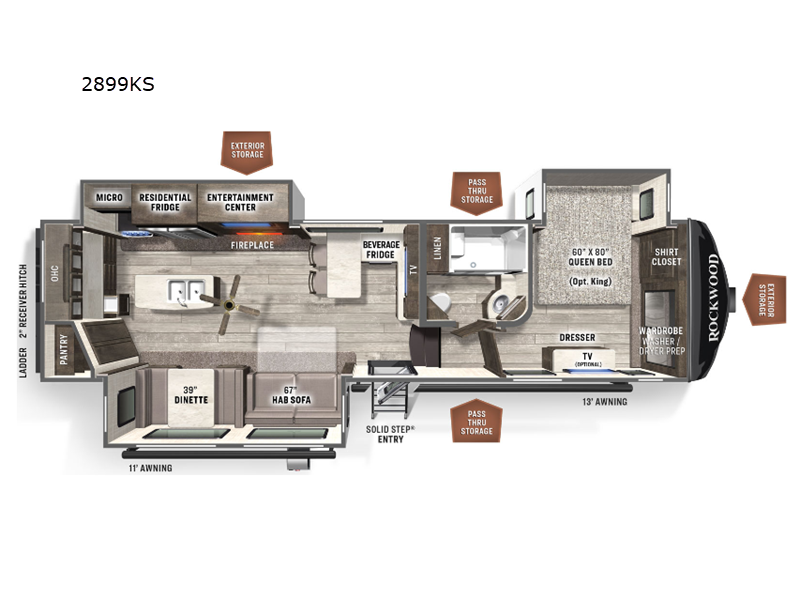 | TV Info | LR LED TV | Awning Info | 11' and 13' Power with Adjustable Rain Dump and LED Light Strip |