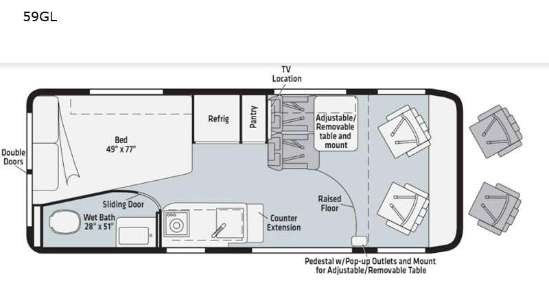 - Dinette seating w/3-point seat belts (59G, 59GL)