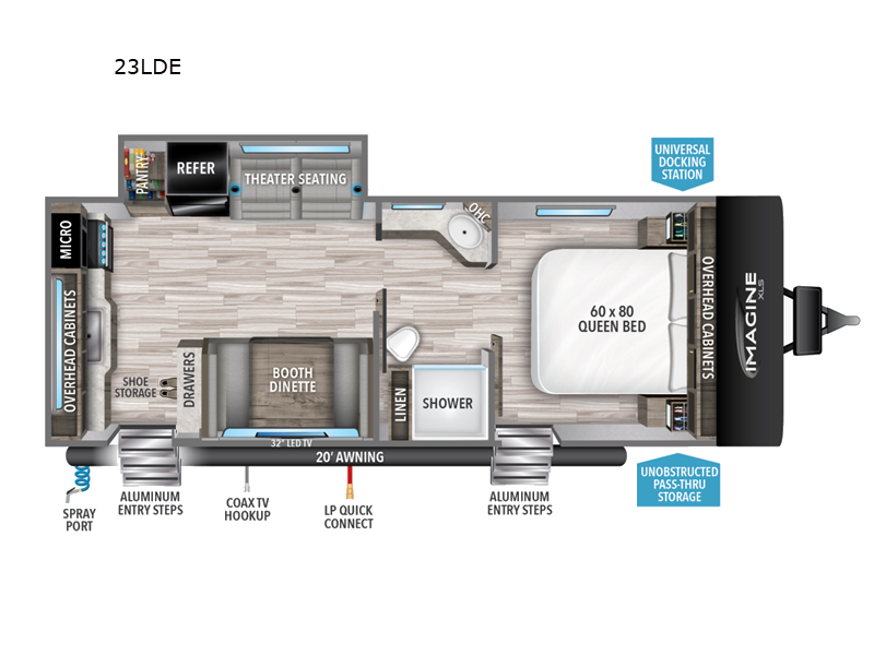 - Spacious Interior: The 23LDE layout includes a comfortable living area with a large slide-out, creating ample space for relaxation and entertaining.
